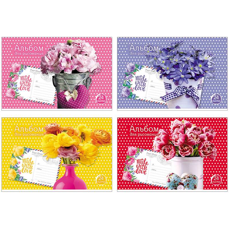 Формат А4. Вид крепления -скрепка. Обложка -мелованный картон. Внутренний блок -офсет 100 гр/м2.Альбом для рисования 24л. А4 на скрепке "Made with love"