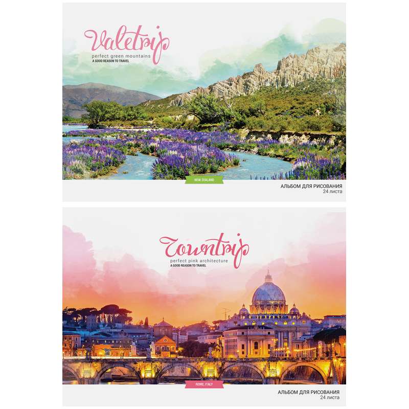 Альбом для рисования формата А4 в обложке из импортного мелованного картона. Внутренний блок из 24 листов офсетной бумаги на скобе. Плотность бумаги — 100 г/кв.м, соответствует Техническому регламенту «О безопасности продукции, предназначенной для детей и подростков». Подходит для рисования различными типами красок, фломастерами, цветными и чернографитными карандашами, гелевыми ручками.Альбом для рисования 24л. А4 на скрепке "Путешествия. Romantic places", обл. офсет
