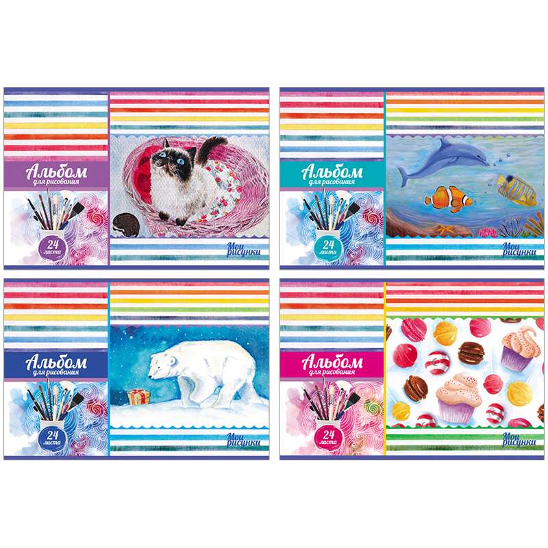 Альбом для рисования А4 формата. Вид крепления -скрепка. Обложка - мелованный картон. Внутренний блок -офсетный, 100 гр/м2. Белизна внутреннего блока -92%.Альбом для рисования 24л. А4 на скрепке "Я - художник!", эконом