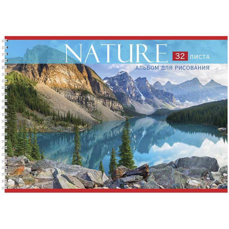 Формат А4. Вид крепления -гребень. Обложка -мелованный картон из хром-эрзаца. Внутренний блок -офсетный, 100 г/м2Альбом для рисования 32л. А4 на гребне "Горная идиллия"