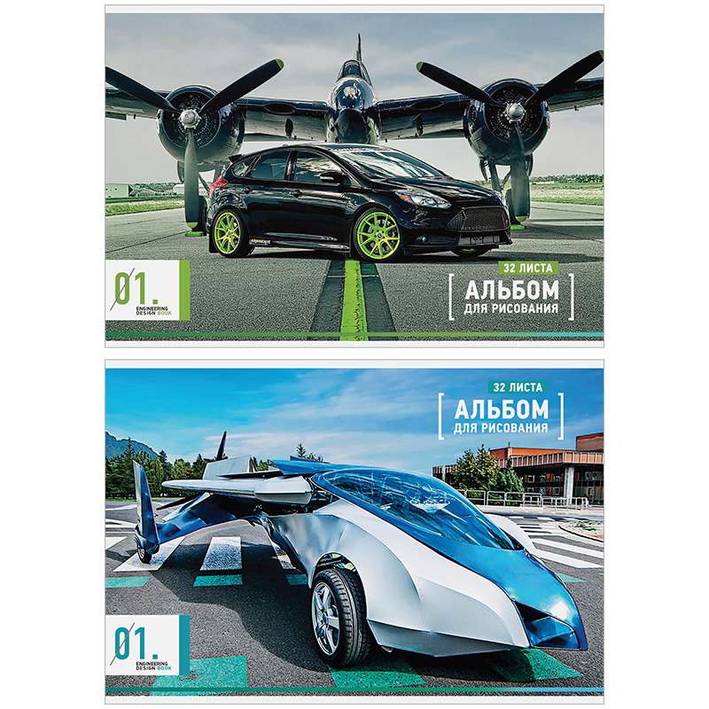Альбом для рисования формата А4 в обложке из импортного мелованного картона. Внутренний блок из 32 листов офсетной бумаги на скобе. Плотность бумаги — 100 г/кв.м, соответствует Техническому регламенту «О безопасности продукции, предназначенной для детей и подростков». Подходит для рисования различными типами красок, фломастерами, цветными и чернографитными карандашами, гелевыми ручками. Отделка обложки – гибридный выборочный УФ-лак (ТВИН-лак).Альбом для рисования 32л. А4 на скрепке "Авто. Машины будущего", ТВИН-лак