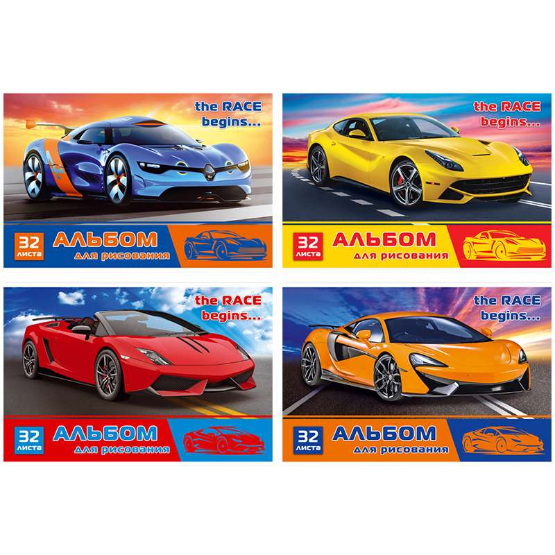 Формат А4. Вид крепления -скрепка. Обложка -мелованный картон. Внутренний блок -офсет 100 гр/м2.Альбом для рисования 32л., А4, на скрепке BG "Скорость и стиль"