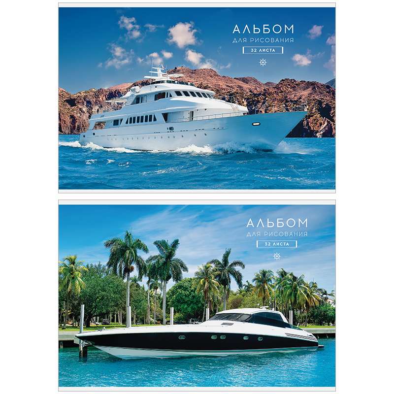 Альбом для рисования формата А4 в обложке из импортного мелованного картона. Внутренний блок из 32 листов офсетной бумаги на скобе. Плотность бумаги — 100 г/кв.м, соответствует Техническому регламенту «О безопасности продукции, предназначенной для детей и подростков». Подходит для рисования различными типами красок, фломастерами, цветными и чернографитными карандашами, гелевыми ручками. Отделка обложки – сплошной глянцевый УФ-лак.Альбом для рисования 32л. А4 на скрепке "Красивые яхты", глянцевый уф-лак