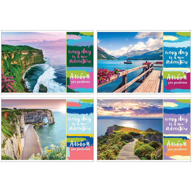 Формат А4. Вид крепления -гребень. Обложка -мелованный картон. Внутренний блок - офсетный, 100 г/м2. Белизна внутреннего блока -92%.Альбом для рисования 40л. А4 на гребне "Новые приключения", эконом