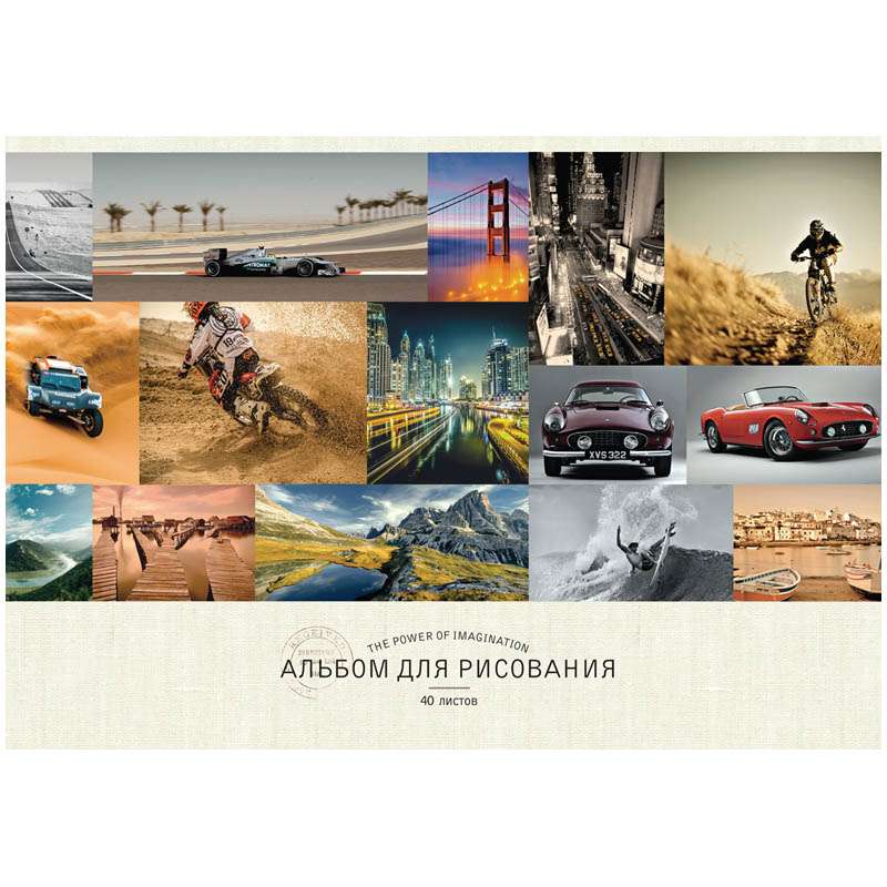 Внутренний блок – офсет 100 гр/м2. Обложка – мелованный картон, ВД-лак. Объем блока – 40 л. Формат А4.Альбом для рисования 40л. А4 на гребне "Стиль. Mixed collection", ВД-лак