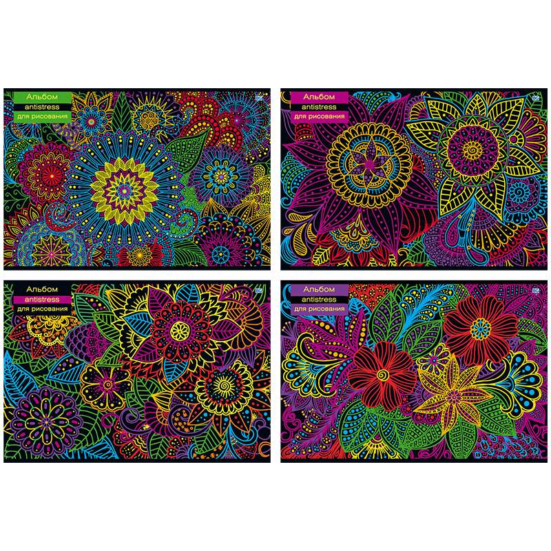 Альбом для рисования А4 формата. Вид крепления - на скрепке. Обложка - мелованный картон. Внутренний блок -офсетный, плотностью 100 гр/м2. Белизна внутреннего блока -92%.Альбом для рисования 40л. А4 на скрепке "Антистресс", эконом