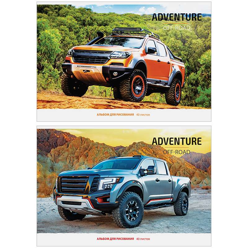 Альбом для рисования формата А4 в обложке из импортного мелованного картона. Внутренний блок из 40 листов офсетной бумаги на скобе. Плотность бумаги — 100 г/кв.м, соответствует Техническому регламенту «О безопасности продукции, предназначенной для детей и подростков». Подходит для рисования различными типами красок, фломастерами, цветными и чернографитными карандашами, гелевыми ручками. Отделка обложки – сплошной глянцевый УФ-лак.Альбом для рисования 40л. А4 на скрепке "Авто. Off-road adventures", глянцевый уф-лак
