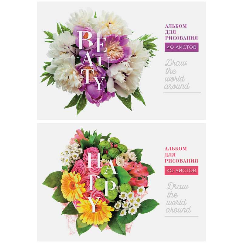 Альбом для рисования формата А4 в обложке из импортного мелованного картона. Внутренний блок из 40 листов офсетной бумаги на скобе. Плотность бумаги — 100 г/кв.м, соответствует Техническому регламенту «О безопасности продукции, предназначенной для детей и подростков». Подходит для рисования различными типами красок, фломастерами, цветными и чернографитными карандашами, гелевыми ручками.Альбом для рисования 40л. А4 на скрепке "Цветы. Модные букеты", глянцевый лак