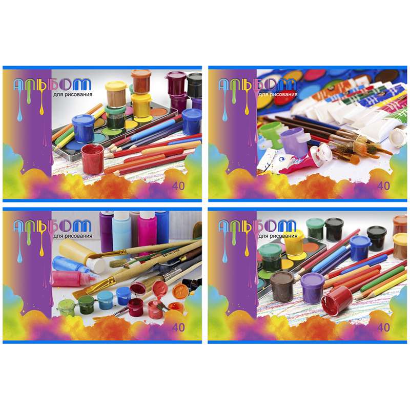Формат А4. Вид крепления - скрепка. Обложка -мелованный картон. Внутренний блок -офсетный 100 гр/м2Альбом для рисования 40л. А4 на скрепке "Карандаши и краски"