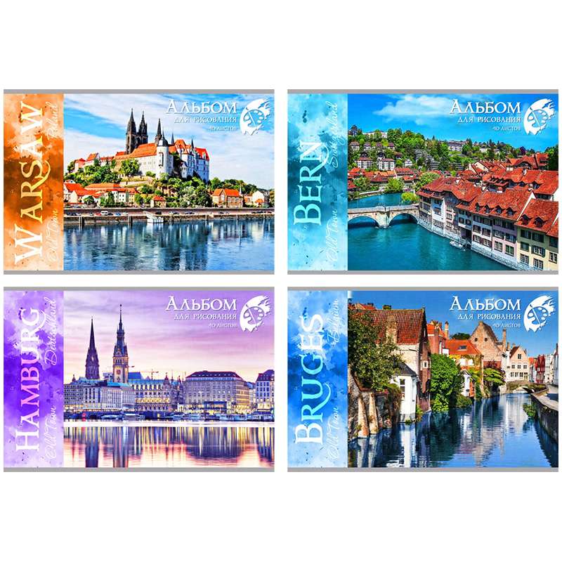 Формат А4. Вид крепления - скрепка. Обложка -мелованный картон. Внутренний блок -офсетный 100 гр/м2Альбом для рисования 40л. А4 на скрепке "Old town"