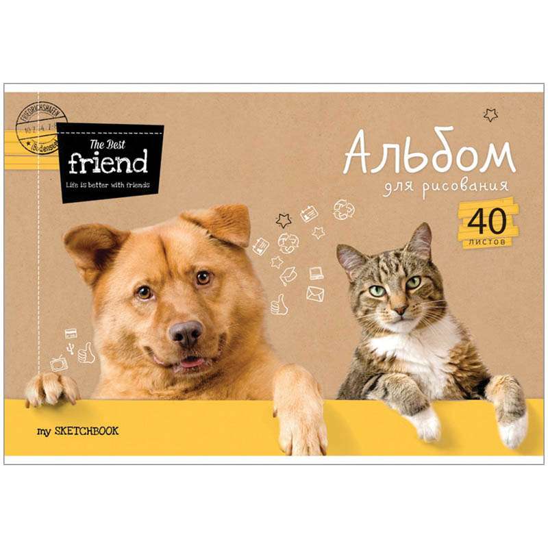 Главная / Товары / КАНЦТОВАРЫ / УПАКОВКА / ХОЗ ТОВАРЫ / РАСХОДНЫЕ МАТЕРИАЛЫ / Канцелярские товары - Школьные / Альбомы и папки для творчества / Альбомы и папки для рисования / Альбом для рисования 40л., А4, на скрепке ArtSpace "Питомцы. The best friends", ВД-лак