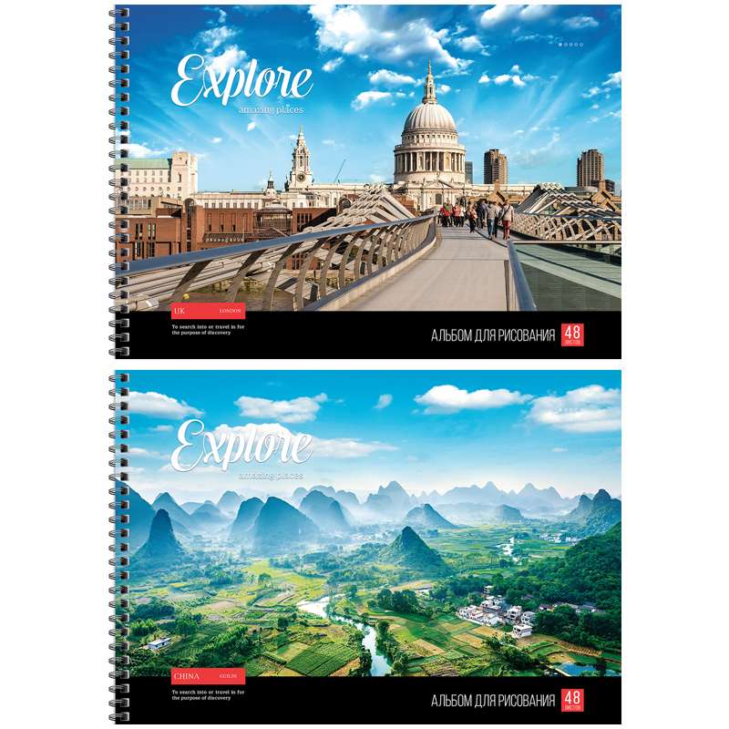 Альбом для рисования ArtSpace® формата А4 в картонной обложке. Состоит из 48 листов офсетной бумаги, тип скрепления - гребень. Плотность бумаги — 100 г/кв.м, соответствует Техническому регламенту «О безопасности продукции, предназначенной для детей и подростков». Подходит для рисования различными типами красок, фломастерами, цветными и чернографитными карандашами, гелевыми ручками.Альбом для рисования 48л. А4 на гребне "Путешествия. Amazing place"