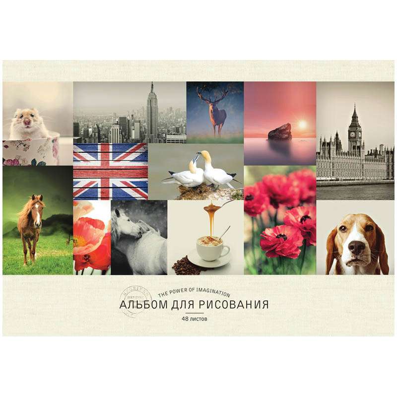 Внутренний блок – офсет 100 г/м². Обложка – мелованный картон, ВД-лак. Объем блока – 48 л. Формат А4Альбом для рисования 48л. А4 на склейке "Стиль. Mixed collection", ВД-лак