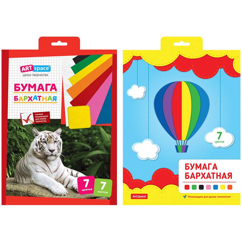 Главная / Товары / КАНЦТОВАРЫ / УПАКОВКА / ХОЗ ТОВАРЫ / РАСХОДНЫЕ МАТЕРИАЛЫ / Канцелярские товары - Школьные / Бумажная продукция для поделок / Бумага цветная и бархатная / Бархатная бумага A4, ArtSpace, 7л., 7цв., в папке с европодвесом