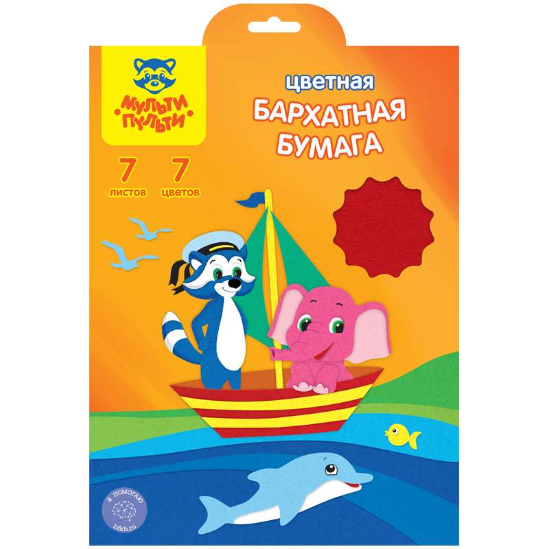 Главная / Товары / КАНЦТОВАРЫ / УПАКОВКА / ХОЗ ТОВАРЫ / РАСХОДНЫЕ МАТЕРИАЛЫ / Канцелярские товары - Школьные / Бумажная продукция для поделок / Бумага цветная и бархатная / Бархатная бумага A4, Мульти-Пульти, 7л., 7цв., в папке с европодвесом