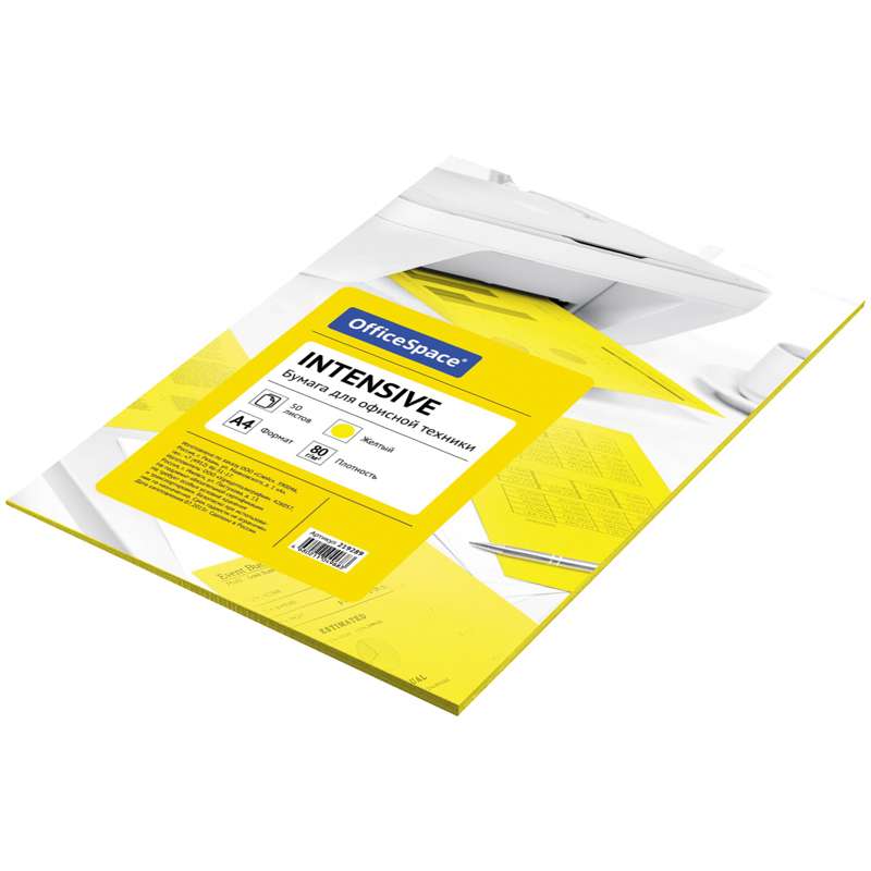 Главная / Товары / КАНЦТОВАРЫ / УПАКОВКА / ХОЗ ТОВАРЫ / РАСХОДНЫЕ МАТЕРИАЛЫ / Канцелярские товары - Школьные / Бумажная продукция для поделок / Бумага цветная и бархатная / Бумага цветная OfficeSpace intensive А4, 80г/м2, 50л. (желтый)