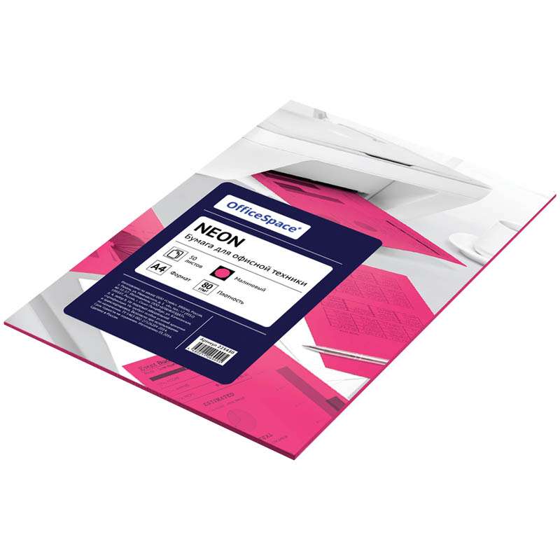 Цветная бумага для офиса малинового цвета предназначена для печати на всех видах оргтехники и ризографах. Одна пачка содержит 50 листов формата А4, в прозрачной упаковке. Идеально подходит для документов, презентаций, рекламных материалов, открыток.Бумага цветная OfficeSpace neon А4, 80г/м2, 50л. (малиновый)