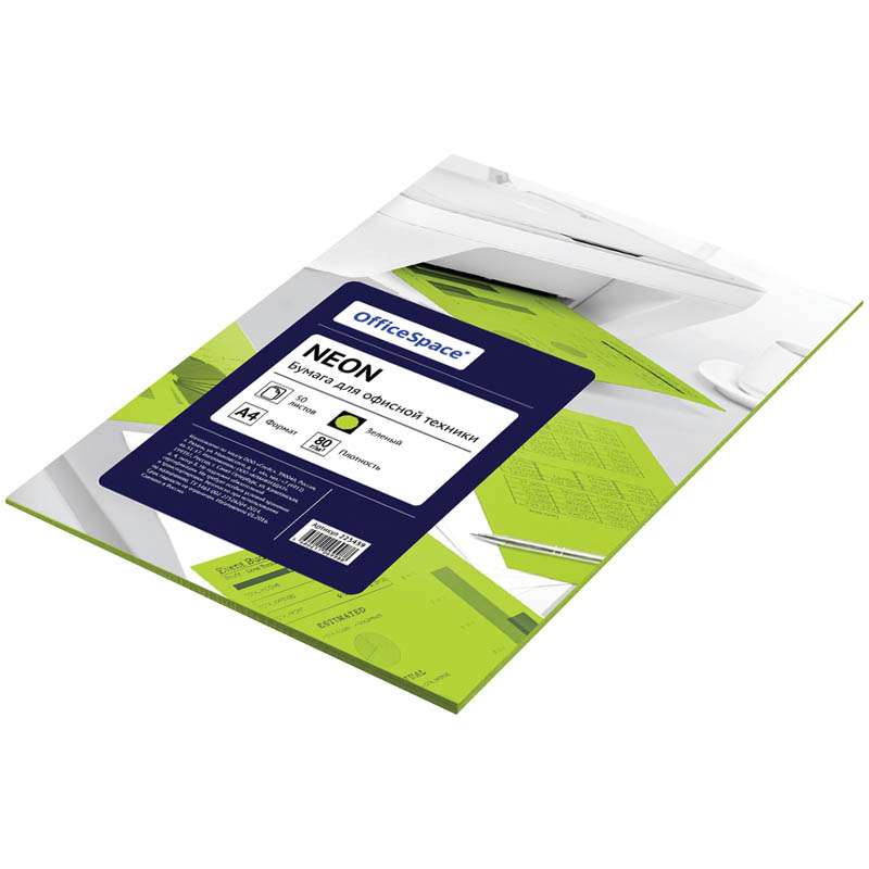 Цветная бумага для офиса зеленого неонового цвета предназначена для печати на всех видах оргтехники и ризографах. Одна пачка содержит 50 листов формата А4, в прозрачной упаковке. Идеально подходит для документов, презентаций, рекламных материалов, открыток.Бумага цветная OfficeSpace neon А4, 80г/м2, 50л. (зеленый)