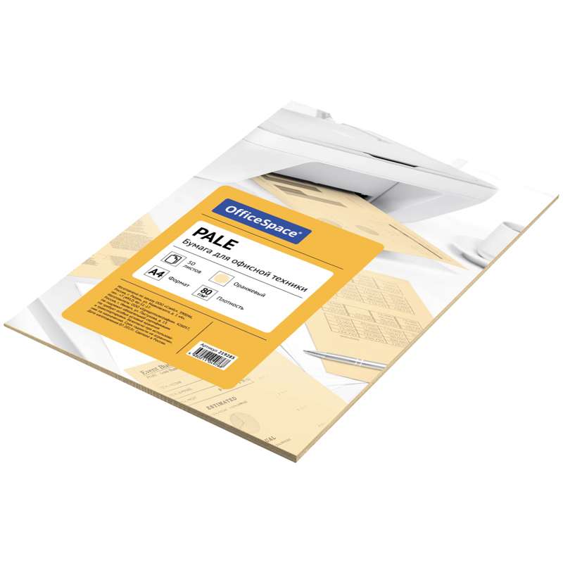 Цветная бумага формата А4, плотность 80 г/м2, цвет - оранжевый пастель, 50 листов, упаковка - т/у пленка с картонной подложкой.Бумага цветная OfficeSpace pale А4, 80г/м2, 50л. (оранжевый)
