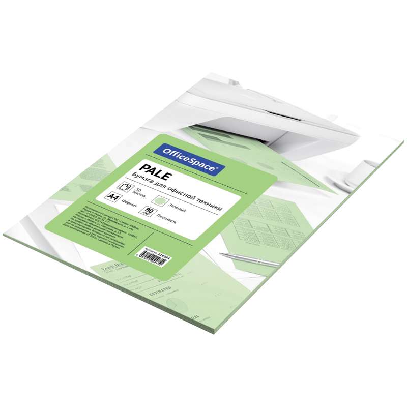 Цветная бумага формата А4, плотность 80 г/м2, цвет - зеленый пастель, 50 листов, упаковка - т/у пленка с картонной подложкой.Бумага цветная OfficeSpace pale А4, 80г/м2, 50л. (зеленый)