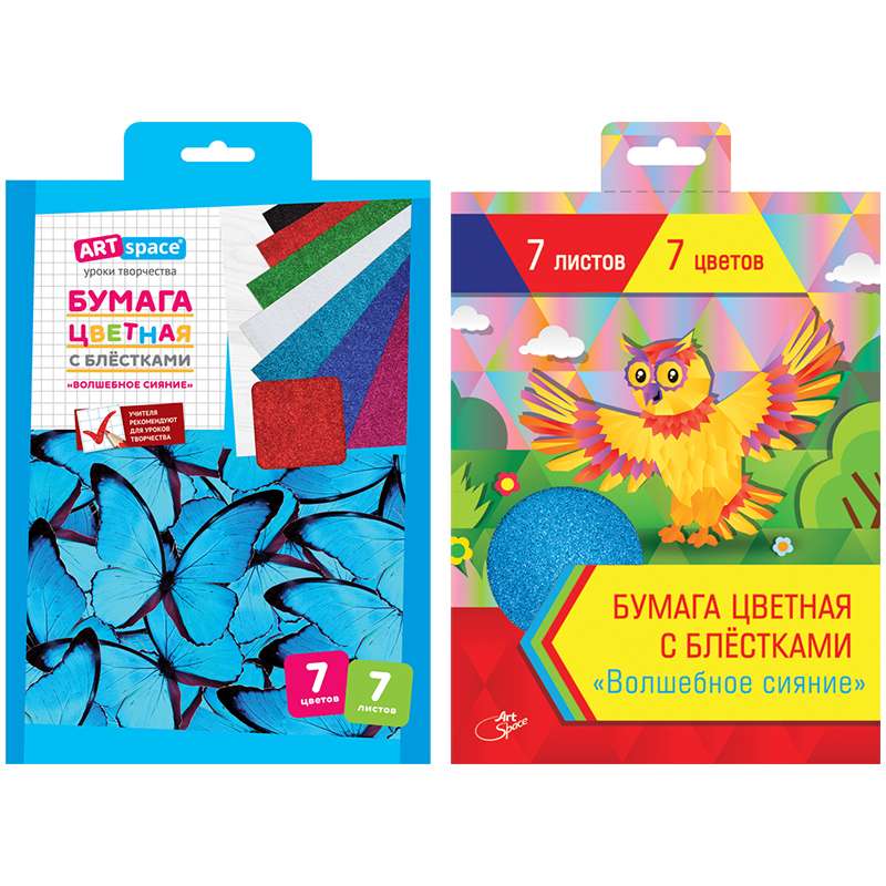 Главная / Товары / КАНЦТОВАРЫ / УПАКОВКА / ХОЗ ТОВАРЫ / РАСХОДНЫЕ МАТЕРИАЛЫ / Канцелярские товары - Школьные / Бумажная продукция для поделок / Бумага цветная и бархатная / Цветная бумага A5, ArtSpace "Волшебное сияние", 7л., 7цв., с блестками, в папке с европодвесом
