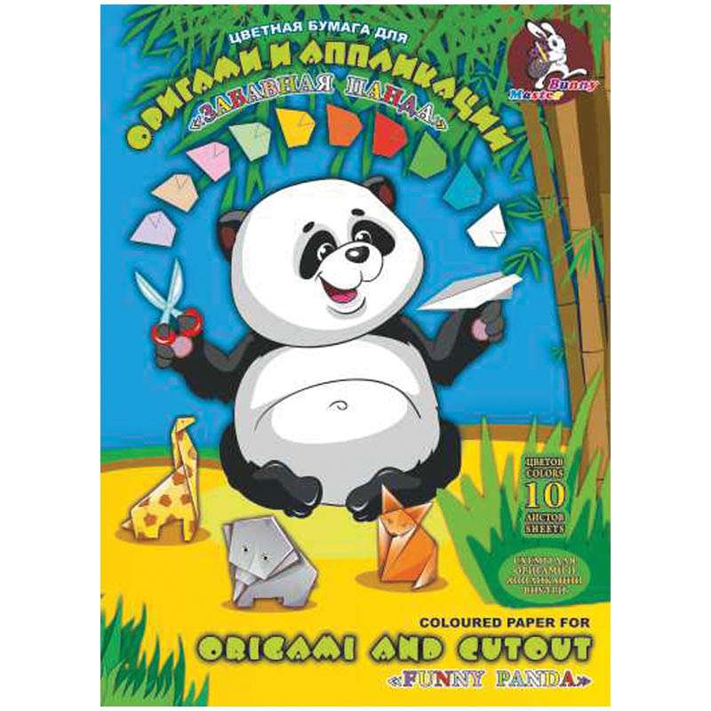 Цветная бумага для оригами подходит для аппликаций, модульного и простого оригами. Занятия оригами оказывают благоприятное влияние на состояние здоровья в любом возрасте благодаря существующей связи между кистью руки и центральной нервной системой. Набор вложен в яркую папку из плотной мелованной бумаги с клапаном. Состоит из: 9 листов цветной офсетной бумаги тонированной в массе плотностью 80 г/м2 и 1 белого, дополнительно вкладыша из офсетной бумаги со схемами для пошаговой сборки 4-х фигур оригами.Цветная бумага для оригами и аппликации А4 10л. 10цв., "Забавная панда", в папке