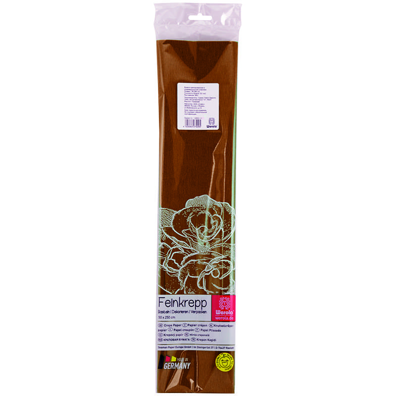 Главная / Товары / КАНЦТОВАРЫ / УПАКОВКА / ХОЗ ТОВАРЫ / РАСХОДНЫЕ МАТЕРИАЛЫ / Канцелярские товары - Школьные / Бумажная продукция для поделок / Бумага крепированная / Бумага крепированная Werola, 50*250см, 32г/м2, растяжение 55%, коричневая, в индивидуальной упаковке