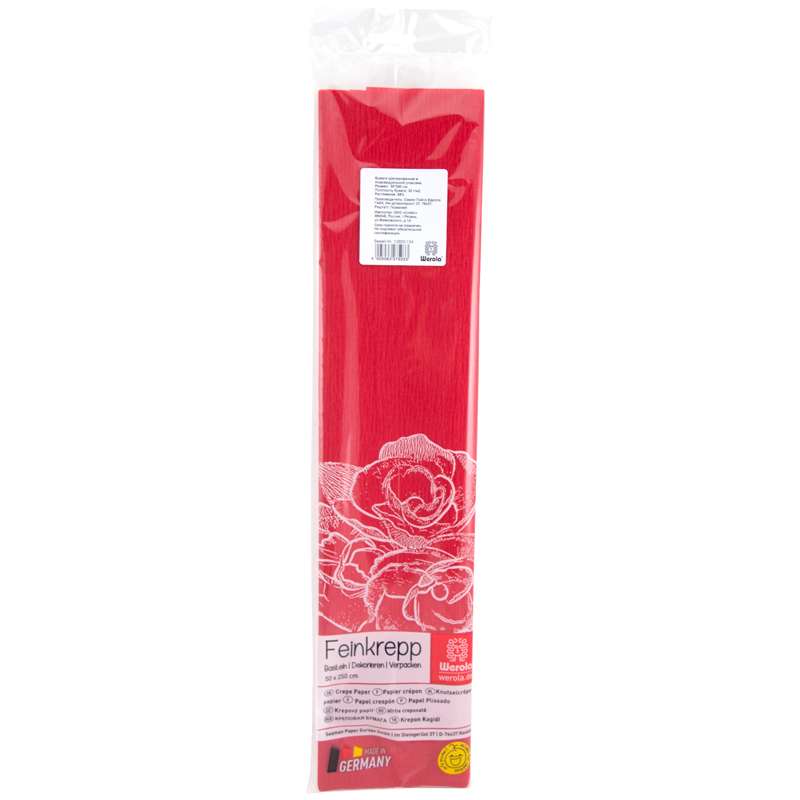 Главная / Товары / КАНЦТОВАРЫ / УПАКОВКА / ХОЗ ТОВАРЫ / РАСХОДНЫЕ МАТЕРИАЛЫ / Канцелярские товары - Школьные / Бумажная продукция для поделок / Бумага крепированная / Бумага крепированная Werola, 50*250см, 32г/м2, растяжение 55%, красная, в индивидуальной упаковке