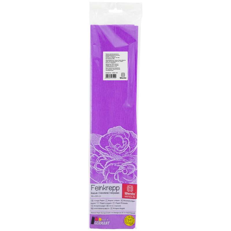Главная / Товары / КАНЦТОВАРЫ / УПАКОВКА / ХОЗ ТОВАРЫ / РАСХОДНЫЕ МАТЕРИАЛЫ / Канцелярские товары - Школьные / Бумажная продукция для поделок / Бумага крепированная / Бумага крепированная Werola, 50*250см, 32г/м2, растяжение 55%, сиреневая, в индивидуальной упаковке