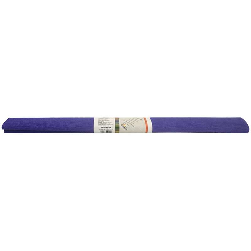 Бумага плотная, эластична, светостойкая, выпускается экологически чистым способом, не содержит токсичных и канцерогенных материалов. Используется для оформления подарков, создания поздравительных открыток, панно, аппликаций, топиарий, поделок в технике торцевания, оформления витрин магазинов, праздников, букетов.Бумага крепированная 50*250 см, 32 г/м2, растяжение 55%, ультрамарин, в рулоне