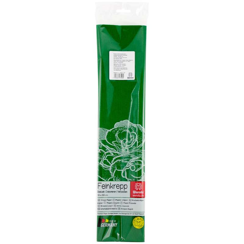 Главная / Товары / КАНЦТОВАРЫ / УПАКОВКА / ХОЗ ТОВАРЫ / РАСХОДНЫЕ МАТЕРИАЛЫ / Канцелярские товары - Школьные / Бумажная продукция для поделок / Бумага крепированная / Бумага крепированная Werola, 50*250см, 32г/м2, растяжение 55%, зеленая, в индивидуальной упаковке