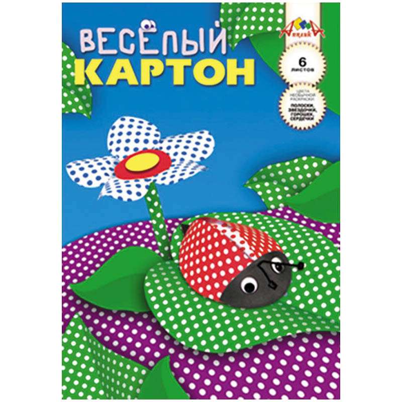 Главная / Товары / КАНЦТОВАРЫ / УПАКОВКА / ХОЗ ТОВАРЫ / РАСХОДНЫЕ МАТЕРИАЛЫ / Канцелярские товары - Школьные / Бумажная продукция для поделок / Картон / Картон цветной двусторонний A4, Апплика "Веселый", 6л., 6цв., узор "Горошек", в папке