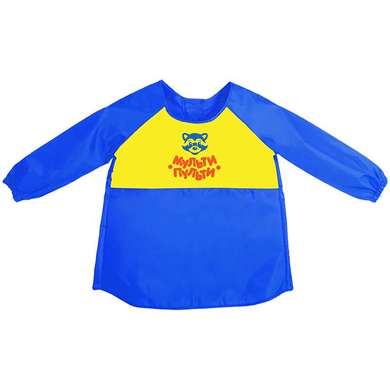 Удобные фартуки ярких цветов для занятий трудом и творчеством. Водоотталкивающая ткань надежно защитит одежду ребенка от возможных загрязнений.Фартук-накидка с рукавами Мульти-Пульти "Приключения Енота", синий