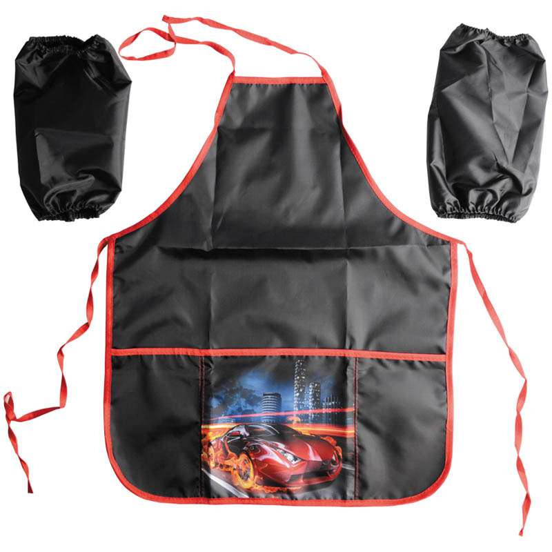 Фартук 430*540мм школьный для уроков труда и творческих занятий. В комплекте - нарукавники.Фартук с нарукавниками ArtSpace "Машина", 3 кармана, черный
