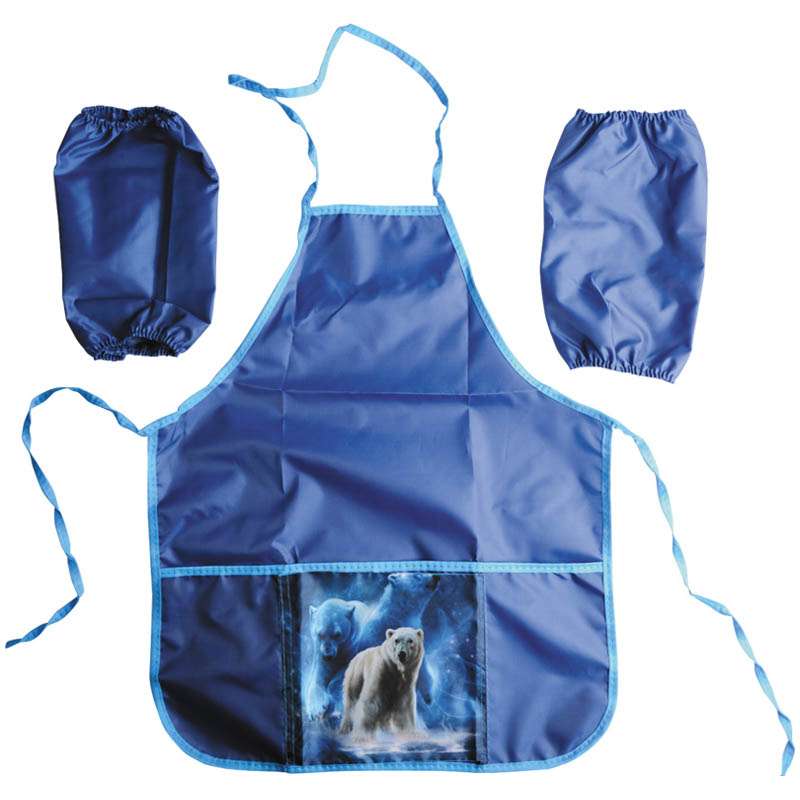 Фартук 430*540мм школьный для уроков труда и творческих занятий. В комплекте - нарукавники.Фартук с нарукавниками ArtSpace "Медведи", 3 кармана, синий