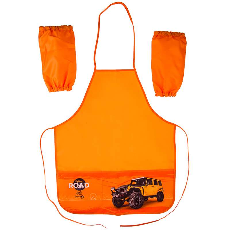 Удобные фартуки с яркими дизайнами для занятий трудом и творчеством. В комплекте нарукавники. Защищает одежду ребенка от загрязнений во время занятий. Материал - полиэстер Наличие кармана увеличивает функциональность.Фартук с нарукавниками ArtSpace "Внедорожник", 2 кармана, оранжевый