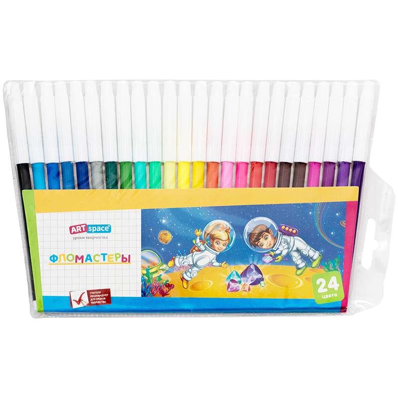 Набор фломастеров для детского творчества. Яркие цвета, невентилируемый колпачок, не токсичны.Фломастеры ArtSpace "Космонавты" 24цв, ПВХ, европодвес