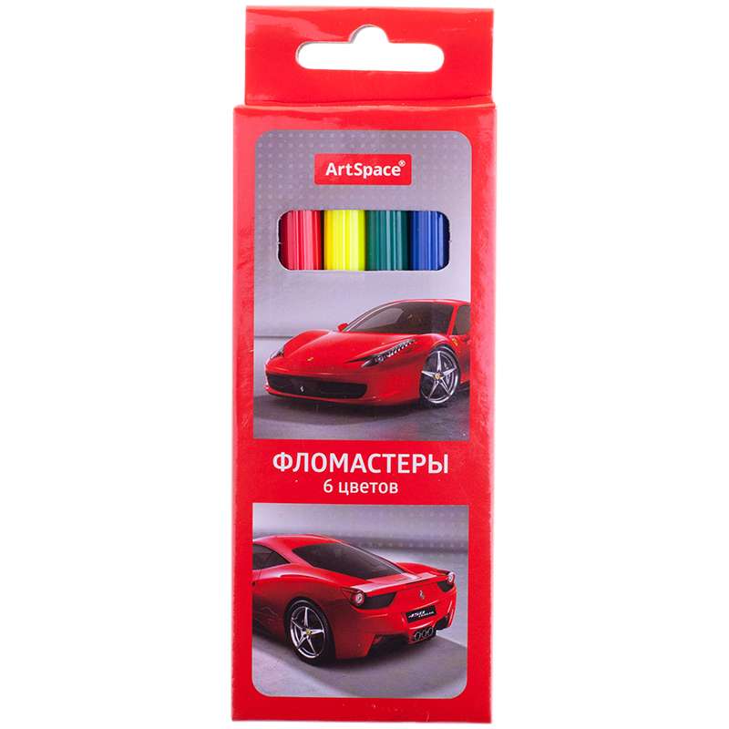 Набор фломастеров. 6 ярких цветов. Вентилируемый колпачок, смываемые чернила на водной основе. Упакованы в картонную коробку с подвесом.Фломастеры ArtSpace "Машинки", 06цв, смываемые, картон, европодвес