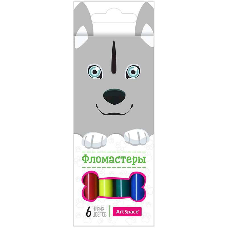 Набор фломастеров. 6 ярких цветов. Вентилируемый колпачок, смываемые чернила на водной основе. Упакованы в картонную коробку с подвесом.Фломастеры ArtSpace "Зверята", 06цв, смываемые, картон, европодвес