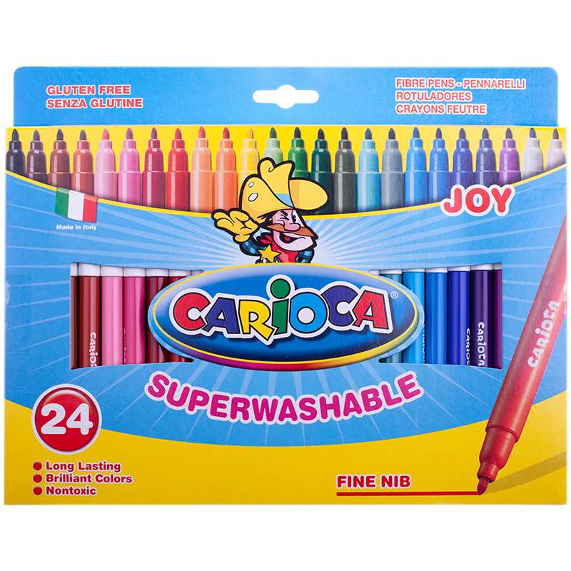Набор фломастеров в картонной упаковке. Нетоксичные и светостойкие фломастеры с яркими насыщенными цветами. Безопасный вентилируемый колпачок. Длина письма свыше 800 метров. Смываемые нетоксичные чернила. Картонная коробка. Пишущий узел из нейлона высокого качества диаметром 2 мм.Фломастеры Carioca "Joy", 24цв, смываемые, картон, европодвес