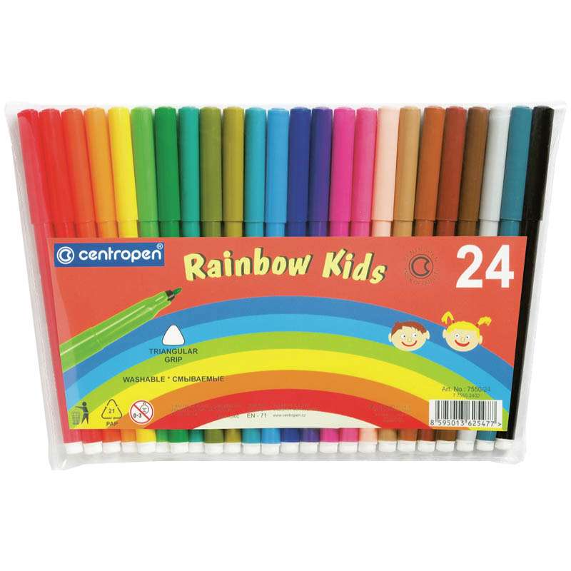 Главная / Товары / КАНЦТОВАРЫ / УПАКОВКА / ХОЗ ТОВАРЫ / РАСХОДНЫЕ МАТЕРИАЛЫ / Канцелярские товары - Школьные / Фломастеры / Фломастеры Centropen "Rainbow Kids", 24цв., трехгранные, смываемые, ПВХ