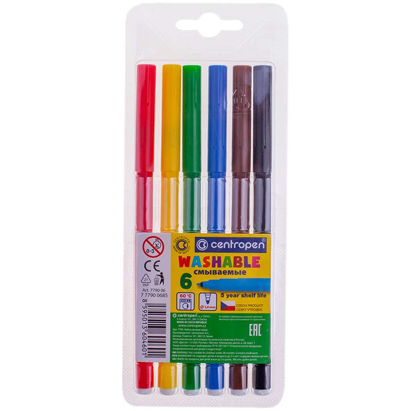 Набор фломастеров для детского творчества. Вентилируемый колпачок, чернила яркие, не токсичны. Фломастеры изготовлены из полипропилена, гарантия от высыхания – 3 года. Упаковка - блистер с европодвесом.Фломастеры Centropen "Слонята", 06цв, смываемые, блистер