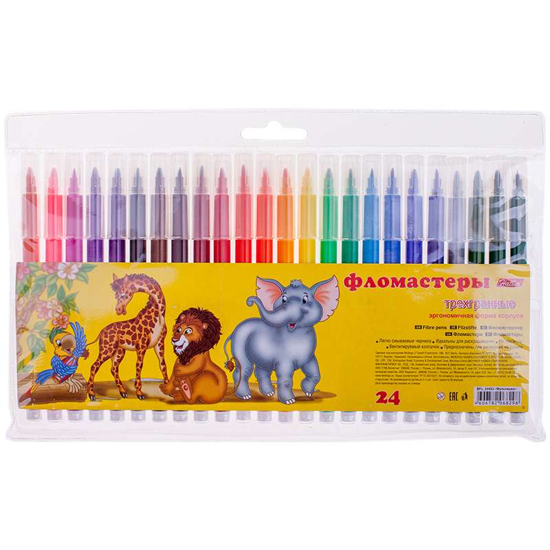 Главная / Товары / КАНЦТОВАРЫ / УПАКОВКА / ХОЗ ТОВАРЫ / РАСХОДНЫЕ МАТЕРИАЛЫ / Канцелярские товары - Школьные / Фломастеры / Фломастеры Hatber "Мультяшки", 24цв., трехгранные, смываемые, блистер