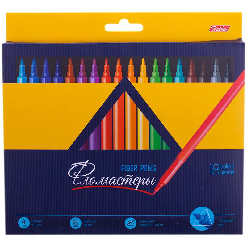 Главная / Товары / КАНЦТОВАРЫ / УПАКОВКА / ХОЗ ТОВАРЫ / РАСХОДНЫЕ МАТЕРИАЛЫ / Канцелярские товары - Школьные / Фломастеры / Фломастеры Hatber "Премиум", 18цв., трехгранные, смываемые, картон, европодвес