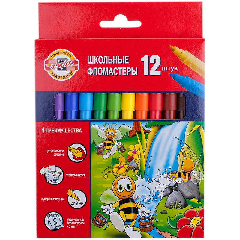 Главная / Товары / КАНЦТОВАРЫ / УПАКОВКА / ХОЗ ТОВАРЫ / РАСХОДНЫЕ МАТЕРИАЛЫ / Канцелярские товары - Школьные / Фломастеры / Фломастеры Koh-I-Noor "Пчелка", 12цв., трехгранные, смываемые, картон, европодвес