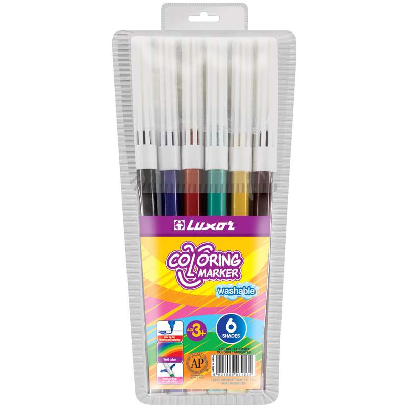 Фломастеры Luxor "Coloring", 06цв., смываемые, ПВХ, европодвес