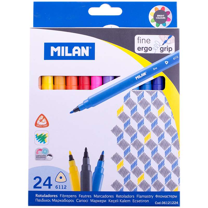 Главная / Товары / КАНЦТОВАРЫ / УПАКОВКА / ХОЗ ТОВАРЫ / РАСХОДНЫЕ МАТЕРИАЛЫ / Канцелярские товары - Школьные / Фломастеры / Фломастеры Milan "6112", 24цв., трехгранные, смываемые, картон, европодвес