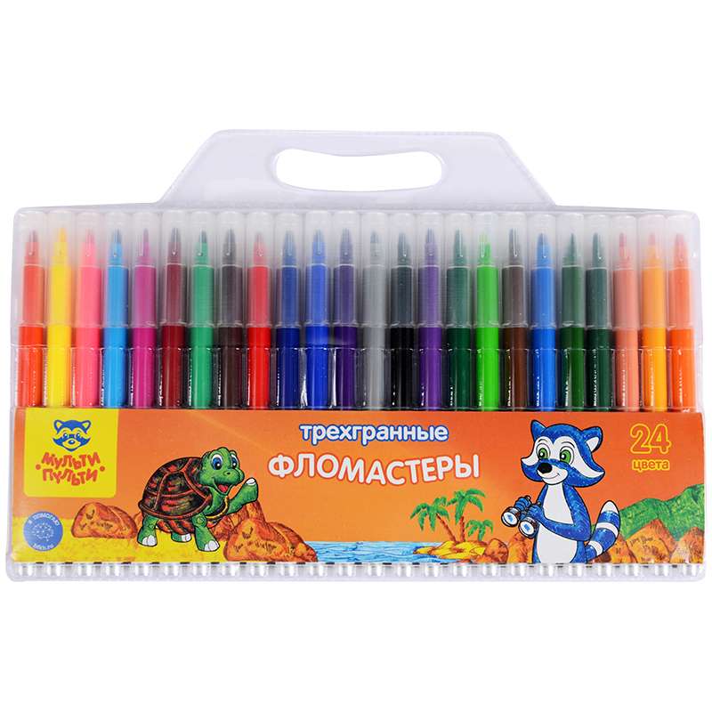 Главная / Товары / КАНЦТОВАРЫ / УПАКОВКА / ХОЗ ТОВАРЫ / РАСХОДНЫЕ МАТЕРИАЛЫ / Канцелярские товары - Школьные / Фломастеры / Фломастеры Мульти-Пульти "Енот на Сейшелах", 24цв., трехгранные, смываемые, блистер