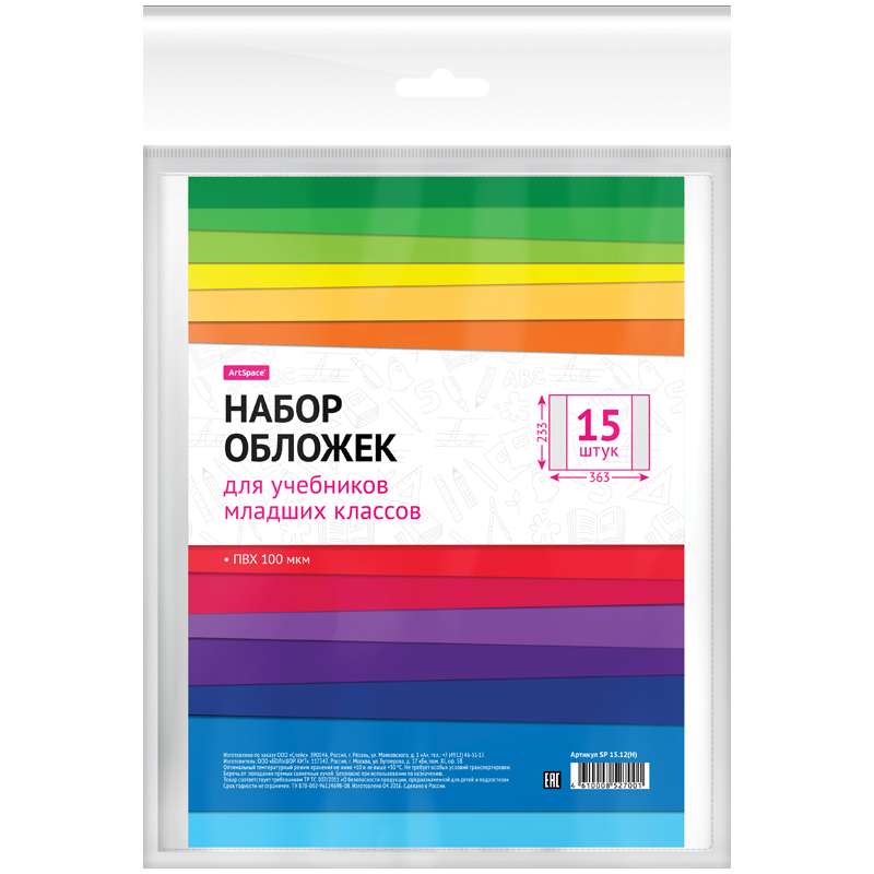 Главная / Товары / КАНЦТОВАРЫ / УПАКОВКА / ХОЗ ТОВАРЫ / РАСХОДНЫЕ МАТЕРИАЛЫ / Канцелярские товары - Школьные / Обложки и пленки школьные / Обложки для тетрадей и книг / Набор обложек (15шт.) 233*363 для учебников младших классов, ArtSpace, ПВХ 100мкм