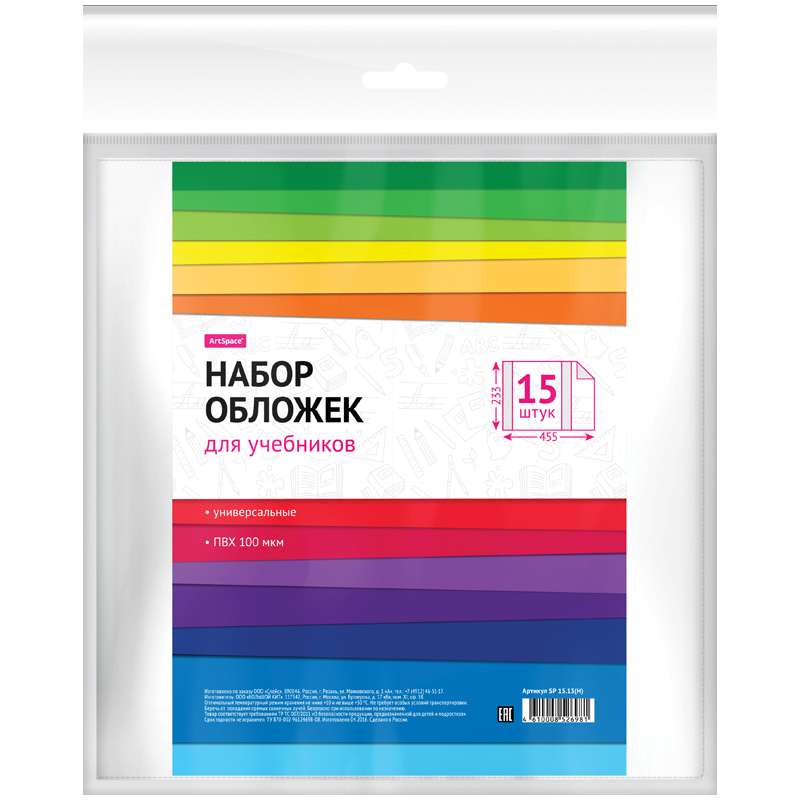 Главная / Товары / КАНЦТОВАРЫ / УПАКОВКА / ХОЗ ТОВАРЫ / РАСХОДНЫЕ МАТЕРИАЛЫ / Канцелярские товары - Школьные / Обложки и пленки школьные / Обложки для тетрадей и книг / Набор обложек (15шт.) 233*455 для учебников, универсальные, ArtSpace, ПВХ 100мкм